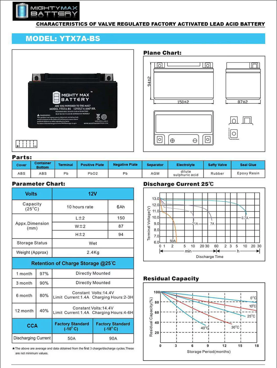 DetailThis YTX7A-BS is a sealed lead-acid (SLA) absorbed glass mat (AGM) rechargeable battery. AGM and GEL batteries are lead-acid and of the same battery chemistry. This battery comes already charged . sealed . maintenance free . and ready to install.Premium quality absorbed glass mat technology (AGM) is ideal for ATVs . Motorcycles . Personal Watercraft . Jet Ski\\\\\\\'s . Snowmobiles and more.